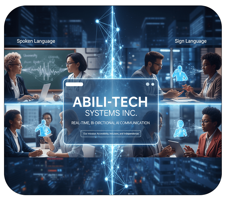 Abili-Tech is building a sign language translation application capable of bidirectional communication, allowing interaction between spoken language and sign language in both directions.